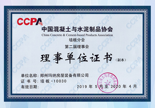 ①中國(guó)混凝土與水泥制品協(xié)會(huì)墻板分會(huì)第二界理事會(huì)理事單位證書(shū)