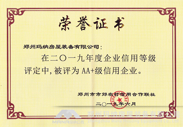 ③瑪納公司榮獲-鄭州市市郊農(nóng)村信用合作聯(lián)社頒發(fā)的榮譽(yù)證書(shū)。