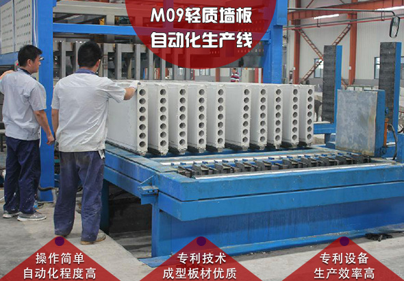 為滿足陶粒隔墻板的大規(guī)模、自動(dòng)化、高品質(zhì)生產(chǎn),瑪納公司現(xiàn)推出新型M09陶粒隔墻板生產(chǎn)線。該線年產(chǎn)能為50萬平法米,以成組立模成型技術(shù)和大抽拔液壓抽芯機(jī)技術(shù)為核心,具有成型精度高、周轉(zhuǎn)效率快、占地面積小等優(yōu)勢(shì)。