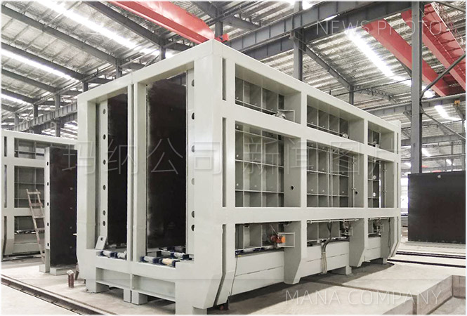 生產(chǎn)線采用成組立模成型技術(shù),采用模塊化控制,實現(xiàn)新型PC大墻板的工業(yè)化生產(chǎn),采用大立模加T型架的子母模技術(shù)極大的提高生產(chǎn)效率。采用六面模具成型,部品成型精度高,幾何尺寸準(zhǔn)確。
