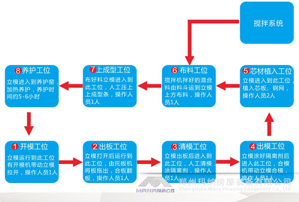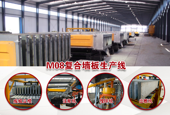 瑪納M08復合墻板生產線是持久耐用的輕質復合墻板機設備,其主要設備組成:集約式低能耗養護室、第三代成組立模、合板翻板機構、壓力注料系統、推板機構、立模回轉機。實際生產線配置要依據客戶選擇而定,公司可依據客戶需求進行生產線定制,以滿足客戶實際需求。