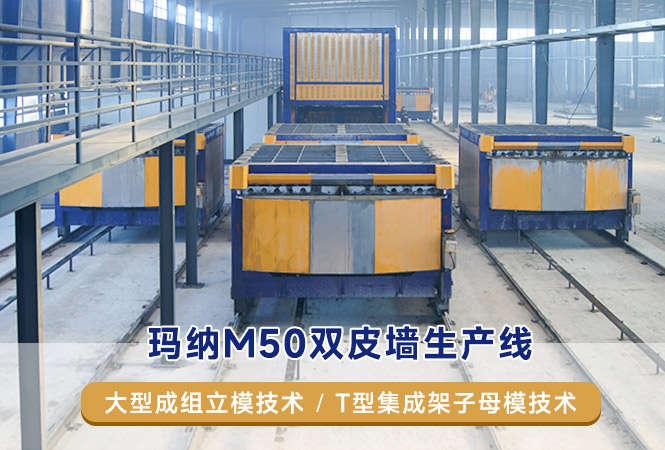 預制裝配式殼板品種繁多,結(jié)構(gòu)復雜,精度要求高,現(xiàn)有傳統(tǒng)的工藝裝備均無法滿足其生產(chǎn)需要,瑪納公司于2013年開發(fā)的子母模工藝裝備生產(chǎn)線,完好的解決了墻板板殼的工業(yè)化制造難題,為墻板板殼的推廣、應(yīng)用奠定了基礎(chǔ)。