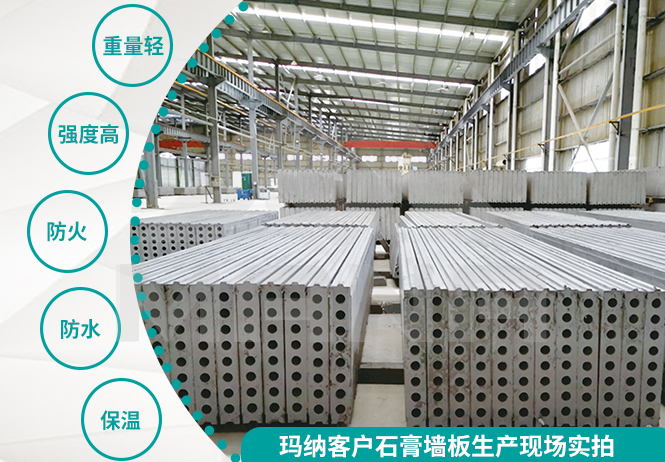 瑪納公司石膏墻板生產線是在新研制機動成組立模墻板成型工藝的基礎上,經過技術升級創新,研制出的新型石膏墻板生產線,瑪納公司石膏墻板生產設備實現了新型建筑隔墻板材的工業化流水線生產,大大降低了生產工人的勞動強度,墻板設備的生產工藝簡單。