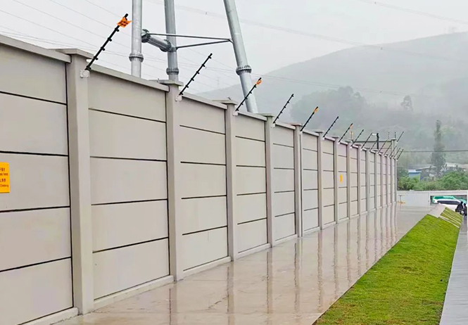 裝配式圍墻安裝便捷,整體安裝接縫高度一致,墻板無色差,抗風柱、墻板、壓頂、柱帽等配件一次性安裝到位,勾縫飽滿美觀,施工人員平均每天可完成30米圍墻安裝,較常規建設方式縮短40%~50%。