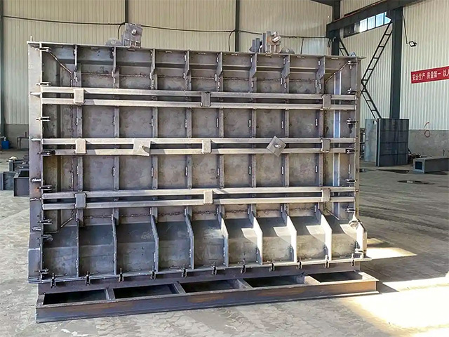 2)模具結構。根據防浪墻和上蓋板的結構形式,分別進行設計。具體包括結構形式、內面模板、支撐方式、開模方式等。由于在混凝土澆筑及振搗過程中會產生較大的壓力,結構形式及支撐方式的設計必須滿足受力及變形要求。