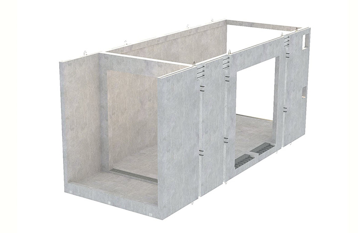該模具為可自動拆卸的MIC構件模具。房間單元澆筑完成后,通過簡單操作即可實現自動脫模,操作十分方便。同時,可根據需求快速調節房間單元的長度和高度。
