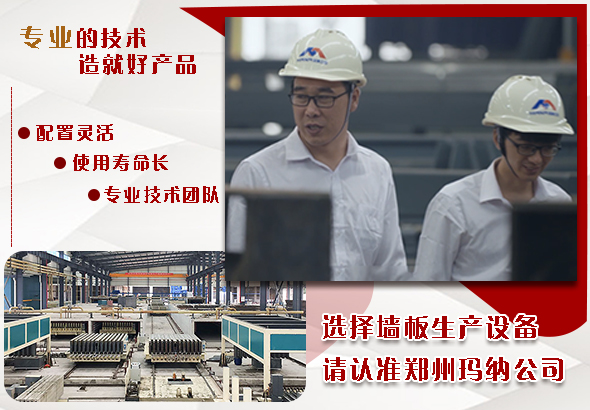 瑪納公司是專業的墻板設備廠家,歷經30余年的發展,擁有多年的墻板設備研發生產經驗,市場占有率非常高,客戶也是遍布全國各個地區,很多客戶墻板生產線已成為當地行業標桿,接待眾多企業的參觀考察,瑪納公司擁有自主設計研發團隊,公司有多位高級工程師,可根據客戶要求在原有設備基礎上滿足個性需求,公司實施廠家直銷模式,所有墻板設備均直接針對終端客戶,省去中間環節,價格更合理化。